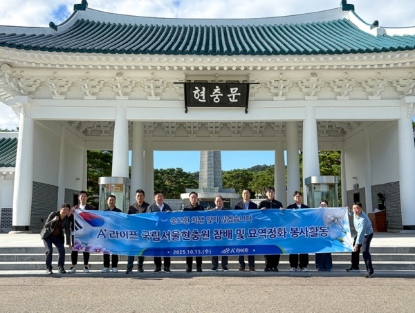㈜에이플러스라이프(대표이사 서덕태)는 지난 10월 15일(수), 임직원들과 함께 국립서울현충원 국가유공자 제1묘역을 방문해 참배 및 묘역 정화 봉사활동을 실시, 순국선열과 호국영령의 희생정신을 되새기고, 국가유공자에 대한 예우를 실천하는 시간을 가졌다고 20일 밝혔다.